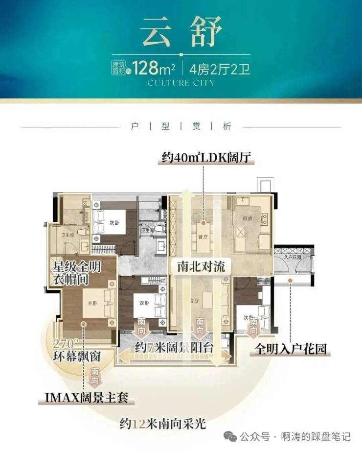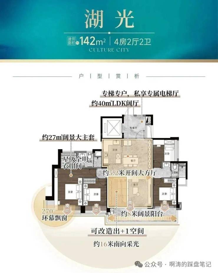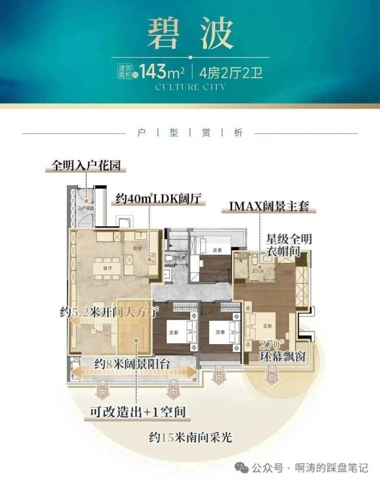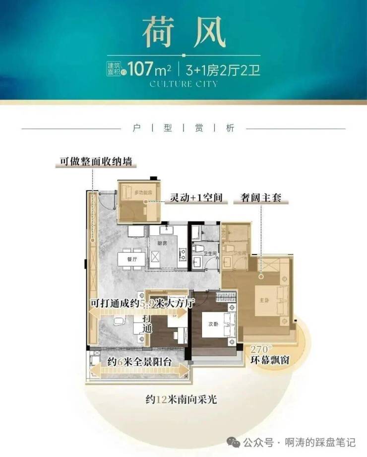 5,主推107-181㎡四房,全南向布局,使用率高达110%-120%,户型方正,采光通风好,部分大户型配备超大阳台、双主套等高端配置。采用6大静音降噪系统、8重节能减耗黑科技及10项全维智能体系,打造高标准智能科技宅,提升生活便捷性与舒适性。