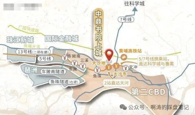 5号线大沙地站距离约800米,7号线二期大沙东站已开通,13号线裕丰围站也在规划之中,这三个地铁站都非常重要,构成了黄金3地铁交汇