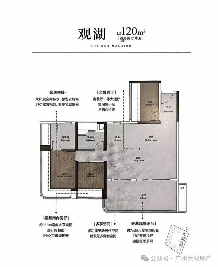 · 约13.1m采光面,四开间朝南,IMAX巨幕级视野