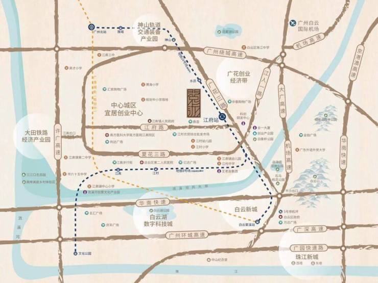 如果自驾,项目门口外的广花快速路,正在扩容升级,即将全线通车,届时,从项目到三元里、越秀、荔湾中心板块瞬时可达。