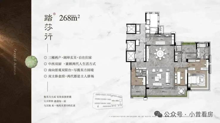 【产品配置】2T4塔楼、2T2、3T2板楼;建面约107-268㎡户户朝南