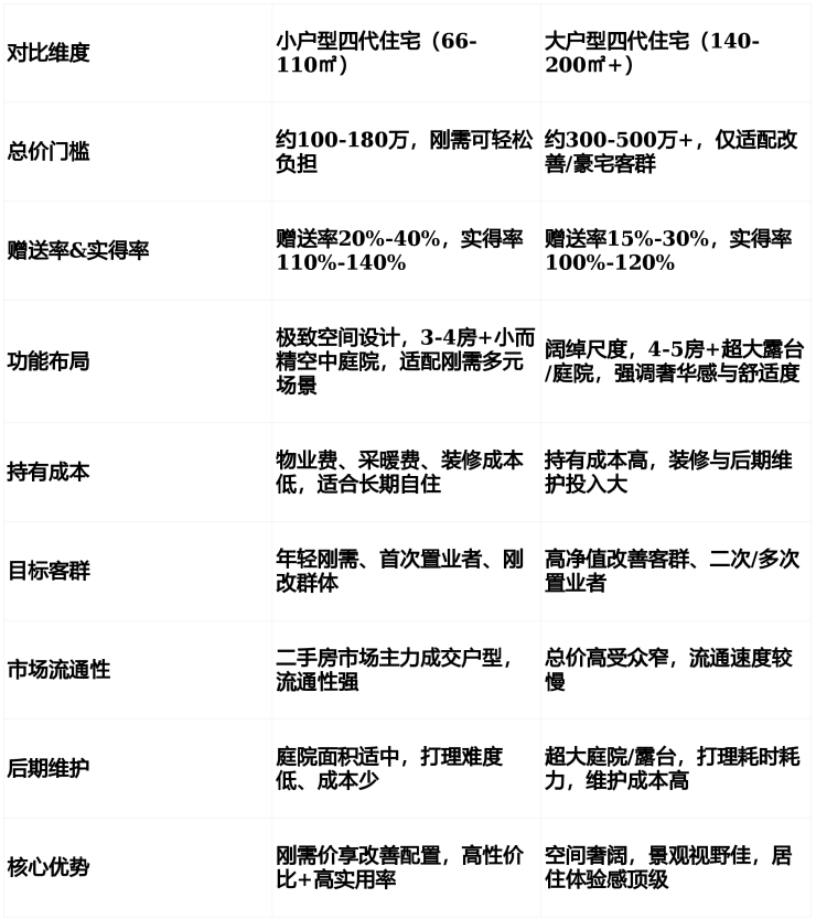 小户型四代住宅 vs 大户型四代住宅 核心对比