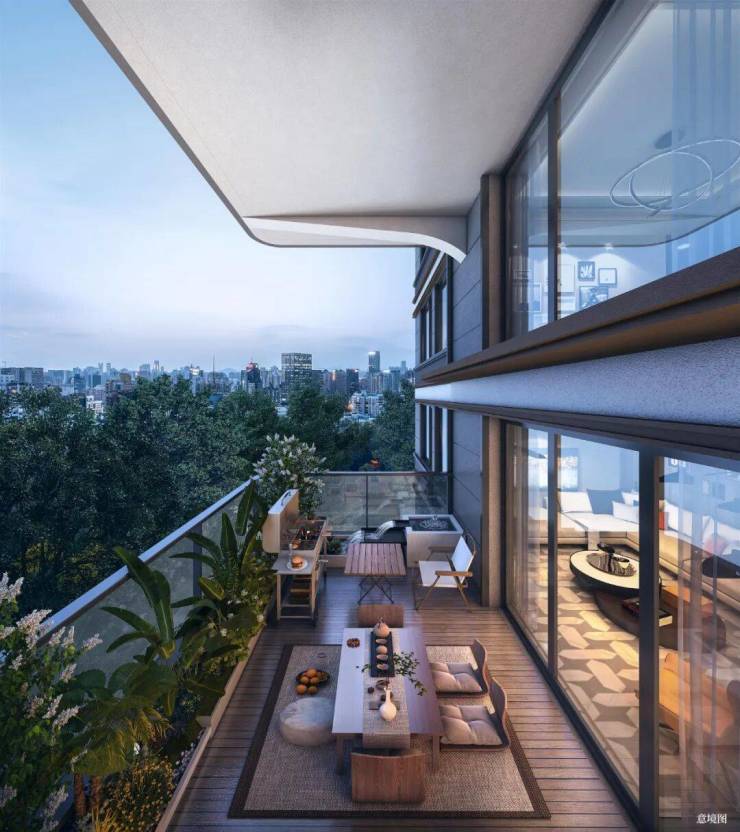 该户型约6米挑空露台,偶数层户型配备约12㎡、奇数层配备约9㎡空中庭院,实现小面积大场景的颠覆。为了弥补四代宅挑高带来的通病,奇偶层花园之间,还铺设了很宽的挡板,能够有效地保障层间私密性。
