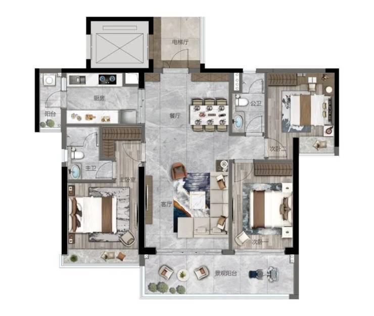 ◇板式建筑,南北对流,开创式大面宽、大开间、双阳台设计、2T3户低密舒适梯户比、私家电梯入户,尽享尊荣。