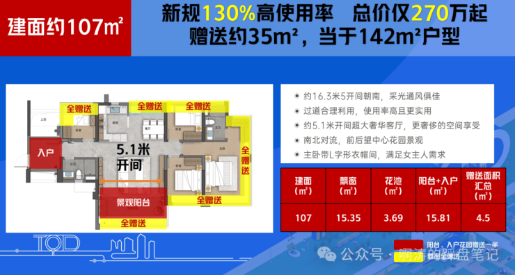 户户拥有超阔楼距、景观视野无遮挡、3T5户,爆款90-107㎡阔景户型补货