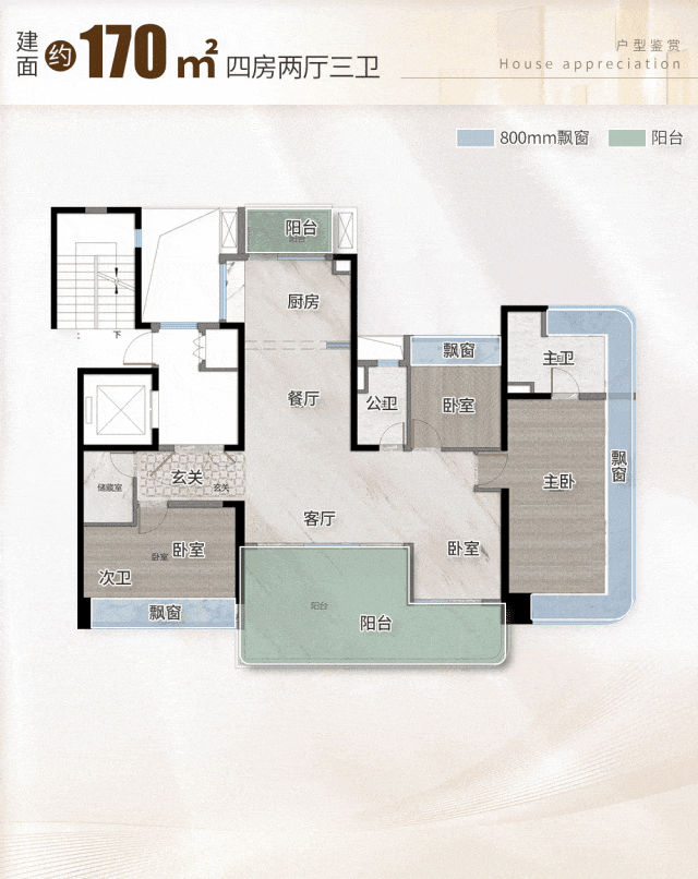 建面约170㎡的四房,则是天奕二期“终极改善”的王牌作品。