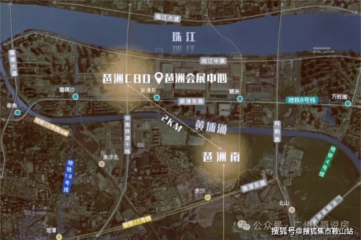 保利琶洲南项目的最大优势,无疑是地段,其位于琶洲南TOD东侧,现状是大围公园,北边是黄埔涌对望广交会展馆,南边是新滘路,西边是赤沙旧改,东边是科韵路。