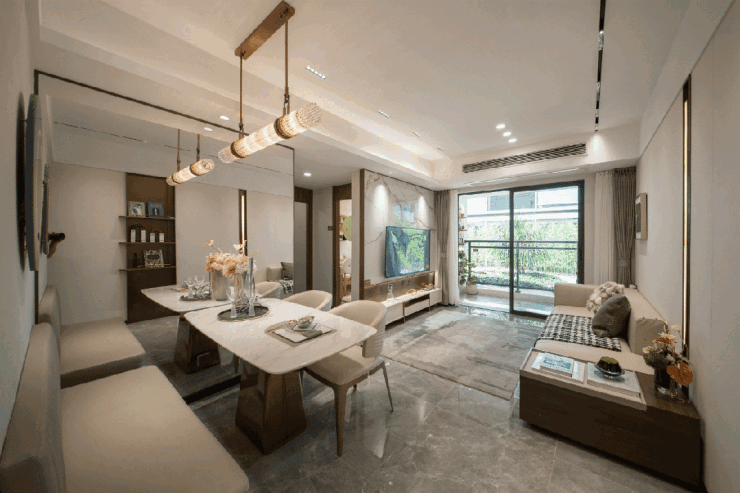 客厅拉到了约6.7米宽,加上横厅格局,相当于零过道,观感显得非常宽敞,又能充分利用空间。