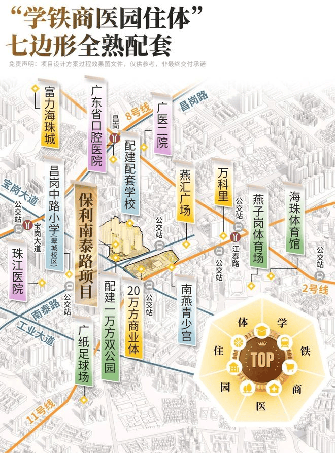 交通配套:保利南泰路位于海珠西核心地段,周边有2号线、11号线、18号线三条地铁线路,其中8号线宝岗大道站约400米,业主们的日常出行便捷度拉满。