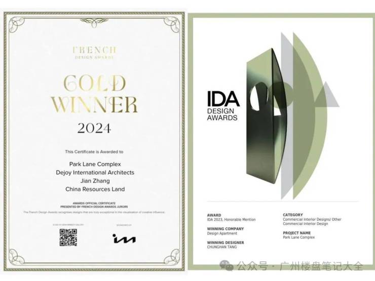产品殊荣:项目被克而瑞评选为“2023年全国十大高端作品”,荣获2023美国IDA国际设计大奖等国际奖项、2024法国设计大奖金奖,入选广州市新型智慧城市和“新城建”十大标杆项目、中指研究院悦系标杆项目。