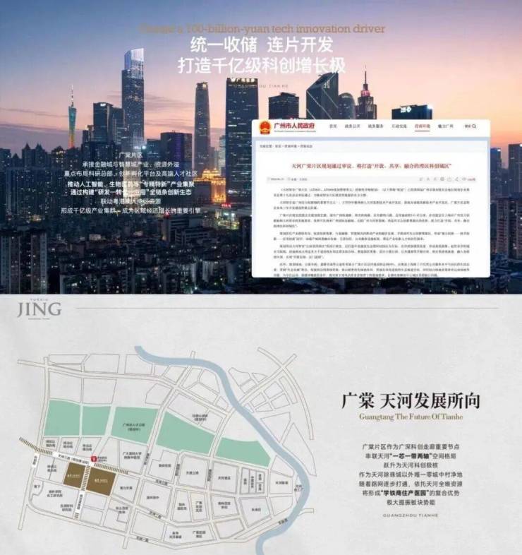 广棠科创城目前已由政府统一收储,连片开发,作为天河主城难得的“零城中村”净地,依托天河优质醇熟资源,已形成“学铁商住产医园”的全维板块,作为链接CBD与CTD双核的枢纽区位,完美实现高效通勤与低密栖居的平衡