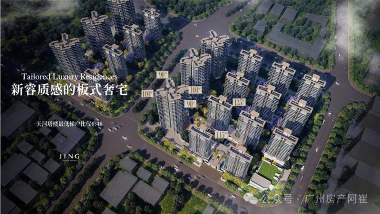 •建面约90㎡ 「天河最低」塔楼梯户比--1:48,对标大户型板楼梯户比