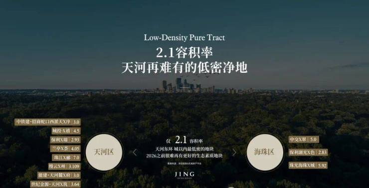•主城唯一容积率约2.1的绝版低密净地、天河核心区难再有的可连片开发无城中村的稀缺净地
