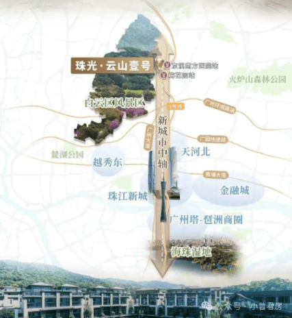 了解一个楼盘,首先要看它的位置是否能适配日常需求。珠光云山壹号坐落在白云山东麓,距离荷树林登山口仅300米左右,日常饭后散步就能直接走进山林,社区里的乾月湖与周边的绿植相映,空气湿度和质量都比市区更优。