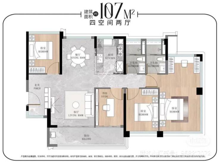🔹建面约107㎡舒适改善四空间