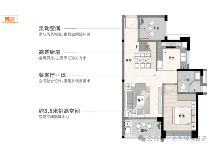✅稀缺真复式:主城区少有5.8米层高绝版(套内面积不超过114㎡产品,层高不得高于3.6m,信息来源:“广州市建筑工程容积率计算办法”公布)