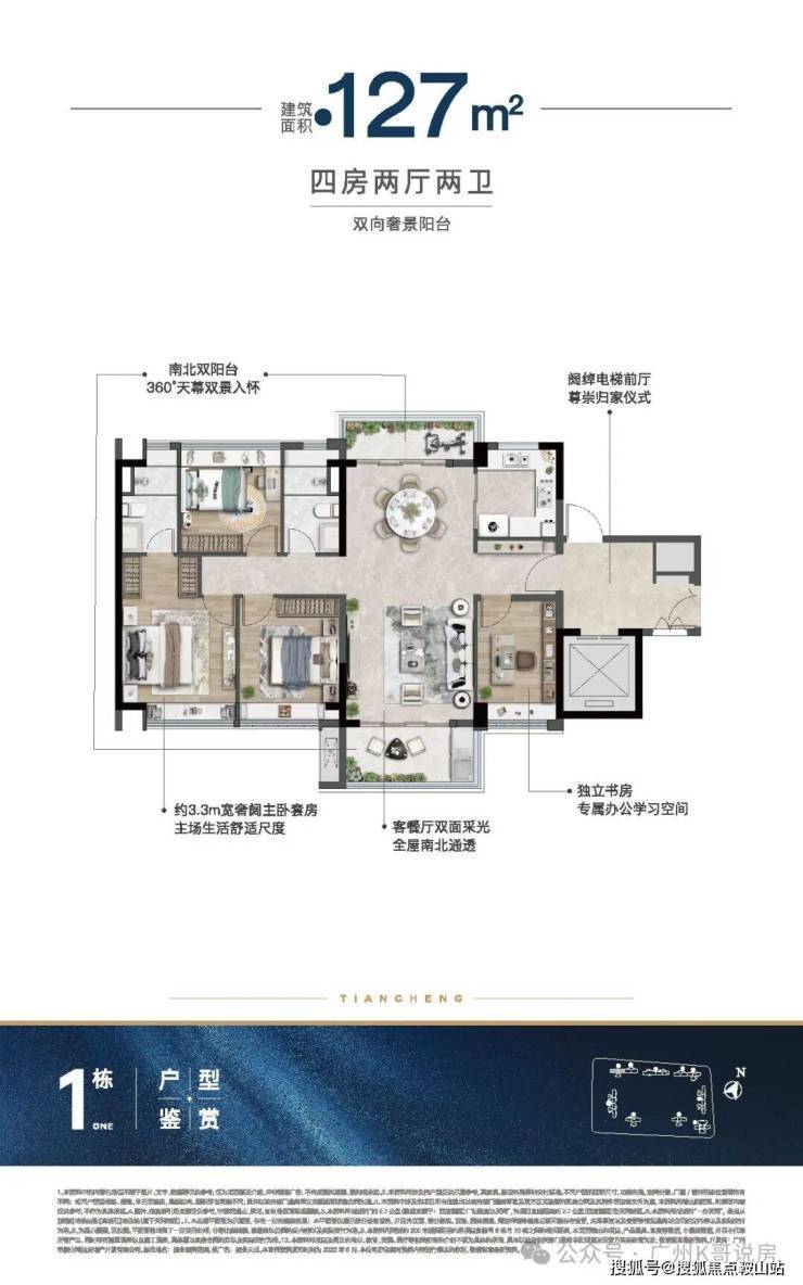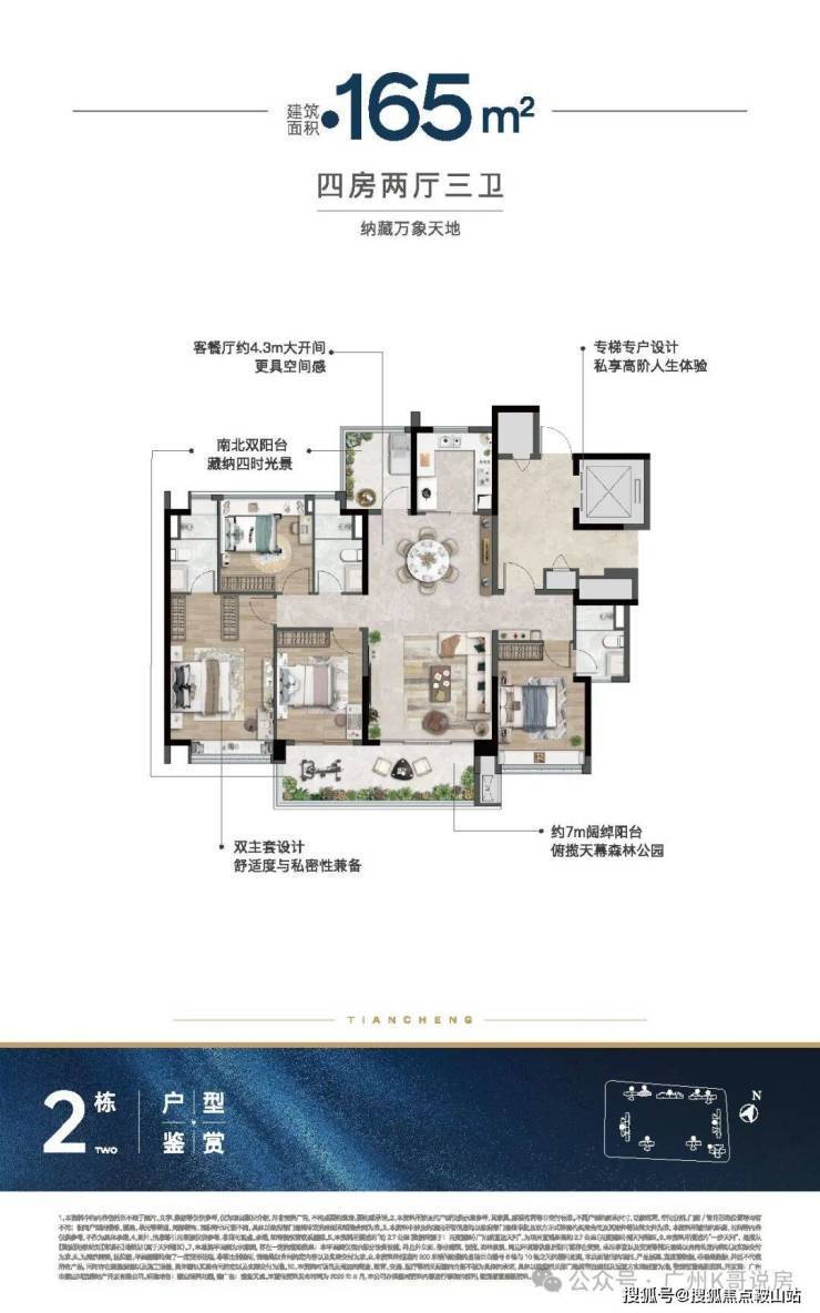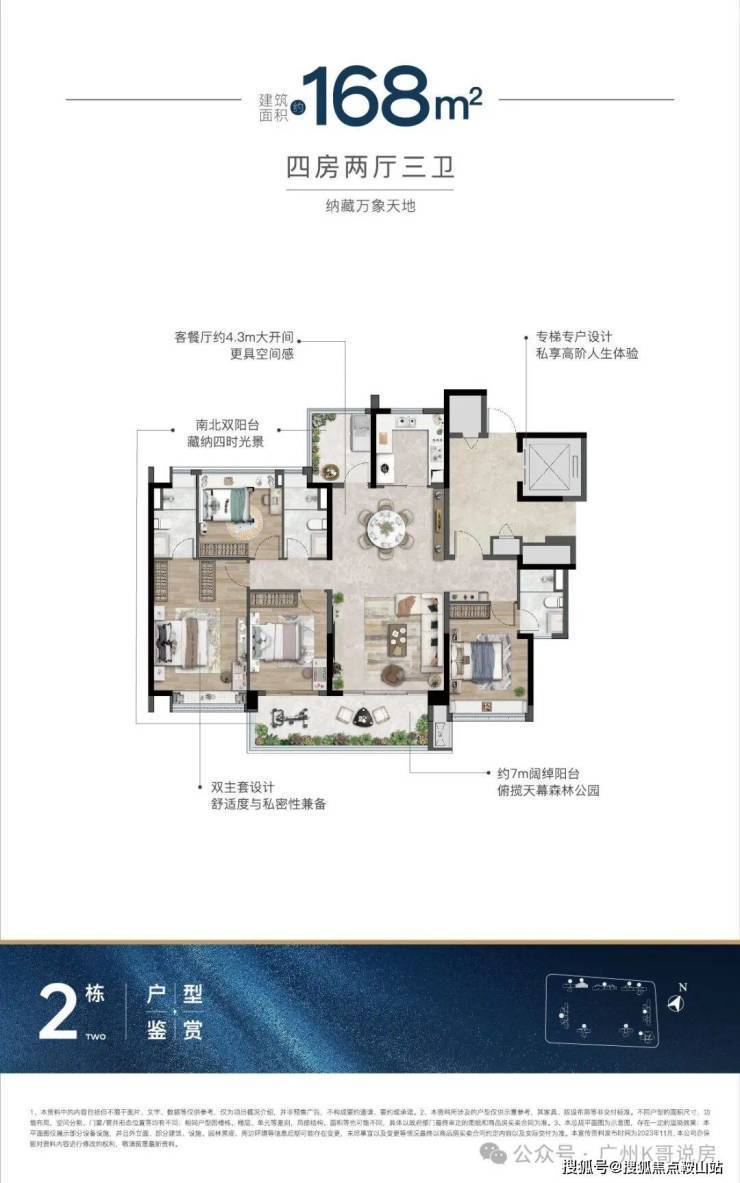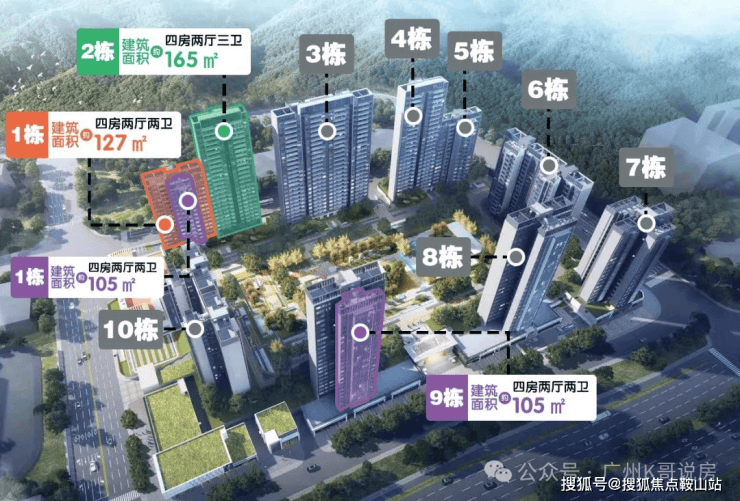 主推建面约104-168㎡全四房户型,两梯两户或两梯三户设计。