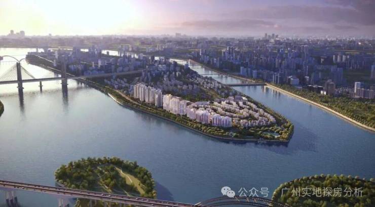 城央岛尖资源:三江汇聚(珠江后航道、沥滘水道、沙溪水道),三面环水,2.3公里私家江堤,容积率仅1.05(广州近5年容积率≤1.1地块占比不足1%)。