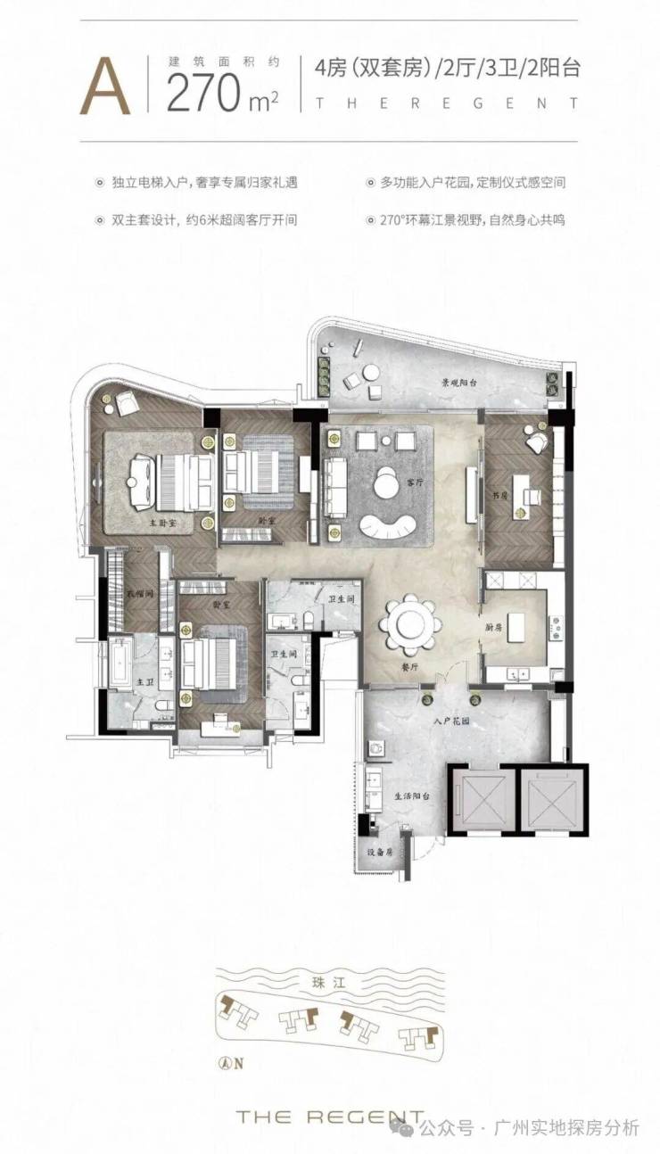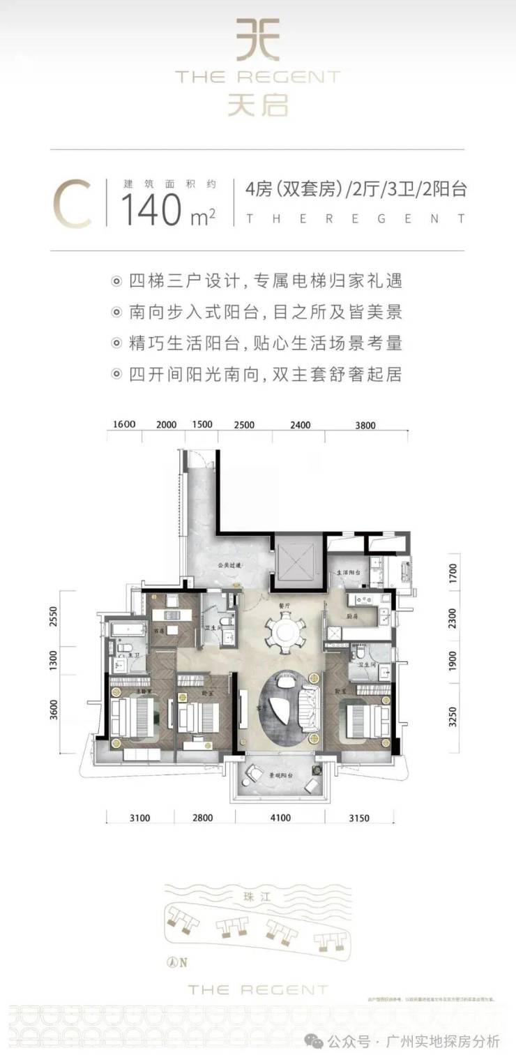 天启大平层:140-480㎡环幕江景现房,270°无遮挡视野,专梯专户,国际一线品牌交标(如劳芬卫浴、大金空调)。