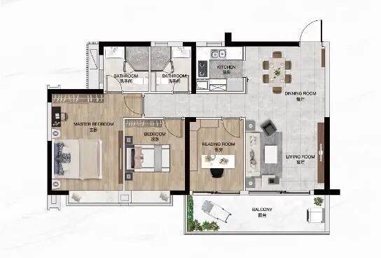 百变空间,四房可改大三房,大客厅
