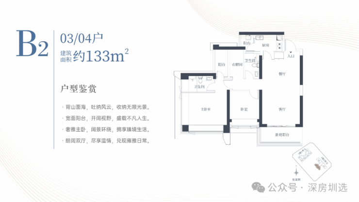 匠筑建面约124-203㎡全生命周期天幕户型,360°采光通风,270°环景主卧,山海日常推窗可得。背山面海,藏风聚气,家宅福泽之地。