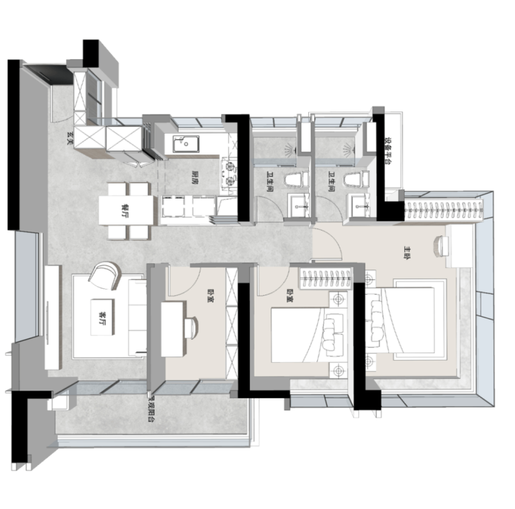 💎建面约84㎡组团首发最小户型(3空间2卫)