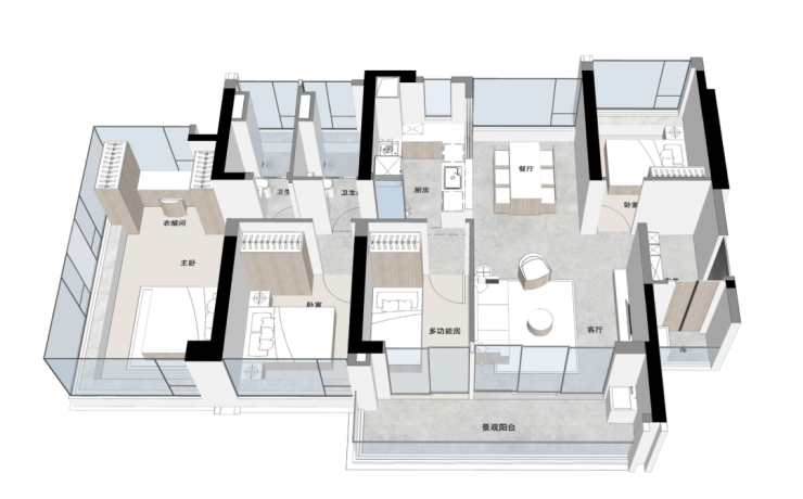 🔸景观舱主卧小家化:阳光衣帽间、360°环幕景观