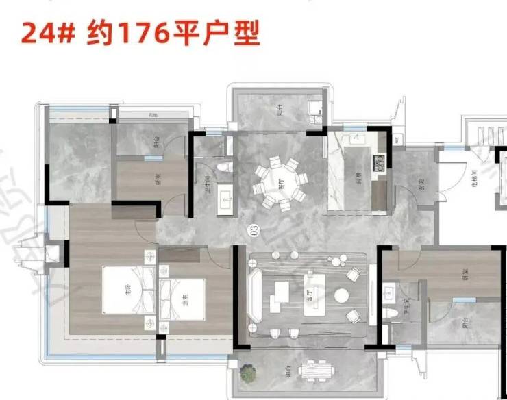 不仅保持了主流高端改善的尺度感,还用定制化打造思路为改善家庭提供了全生命周期的居住方案。