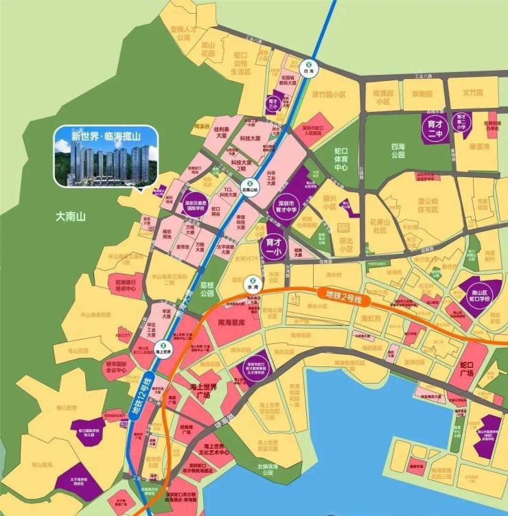 ◎交通配套:12号线花果山站(步行距离约700米)、地铁2号线水湾站、海上世界站;南海大道及沿江高速;邮轮母港、蛇口港、深圳湾口岸。