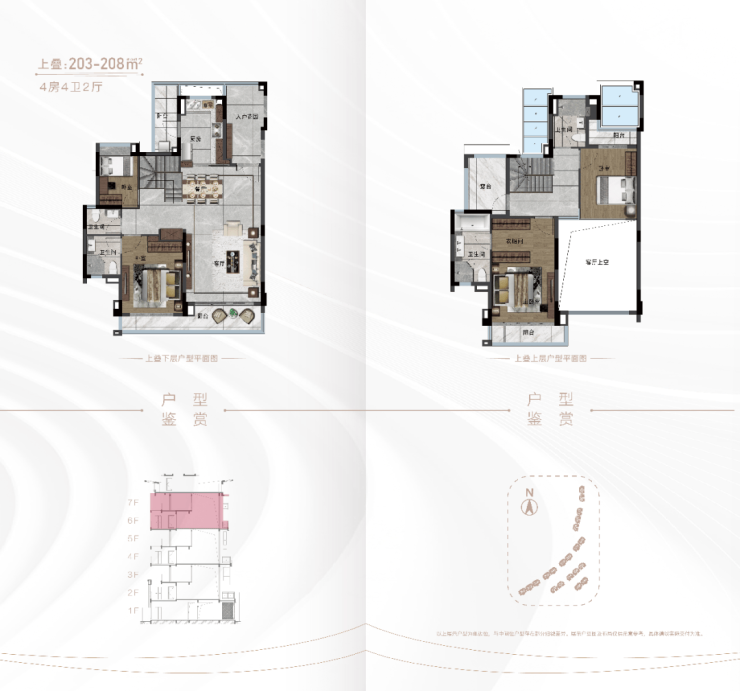 • 203-211㎡下叠:带500㎡花园及地下室,6.3米挑高客厅,主卧套房设计,总价690万起。