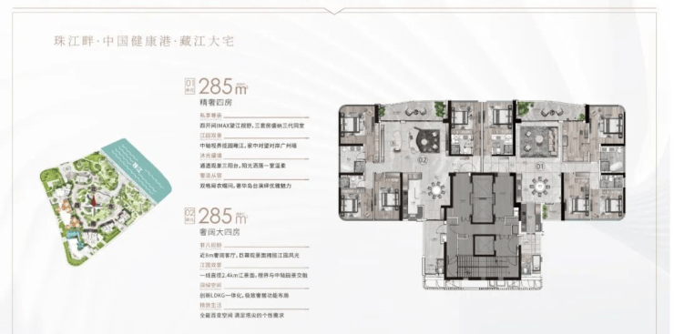 ● 户型:建面约233-285㎡四至五房,极致3.4-3.6m层高,14-40层高层、超高层