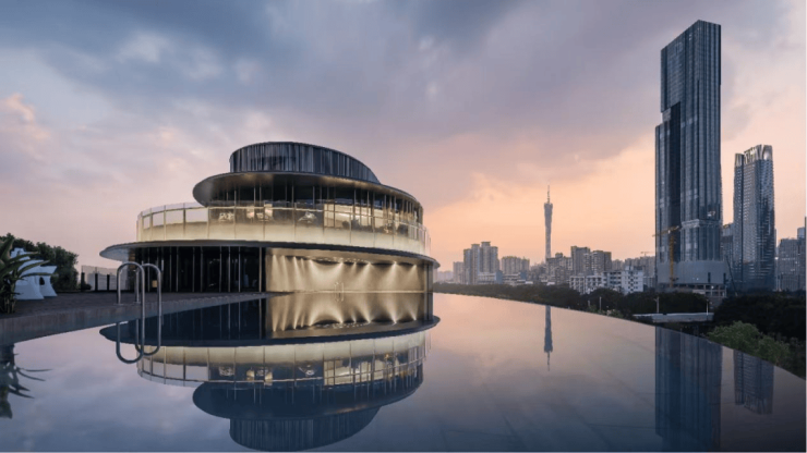 社区内部,则打造有高端会所——“弧光·琶洲城市会馆”,匹配琶洲城市新贵的社交需求,与一般项目会所不同,其首先令人眼前一亮的,便是极富艺术感的外观,圆弧玻璃幕墙,加上简约感的线条,展露出一种自然流动的美感。
