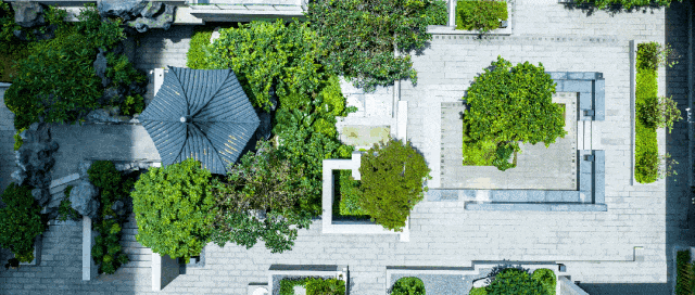 由山水比德设计院设计,以“游园·方寸间”的园林主题,构成“六廊八景三居游”的园林布局。