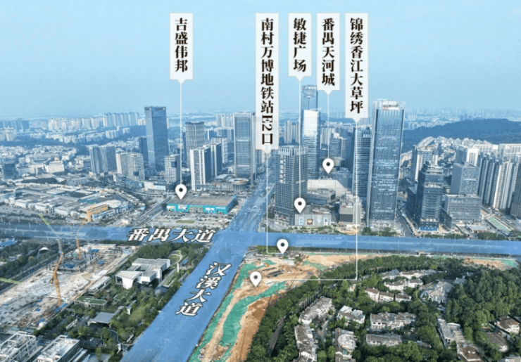 香江 1 号位于番禺大道北与朝阳东路交汇处,属于番禺大石板块,直线距离珠江新城约 10 公里,开车走新光快速,非高峰期 25 分钟左右能到天河。对于在天河、海珠上班的人来说,这个位置算比较折中,比住南沙、增城通勤时间更可控。周边有长隆旅游度假区、万博商务区等,生活配套和就业机会都比较丰富。