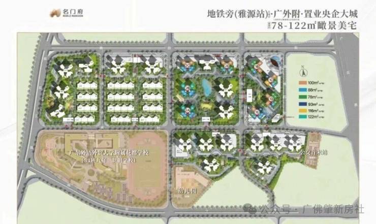 项目已签约引入花都区首座公立九年一贯制广东外语外贸大学附属花都学校(含36班小学,18班初中),社区内还自带18班幼儿园,提供12年的家门口教育。广外附学校于今年8月交付政府,2025年9月开学。(具体招生政策以教育局公布信息为准)