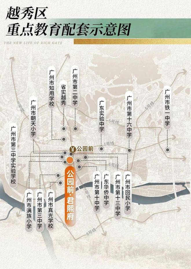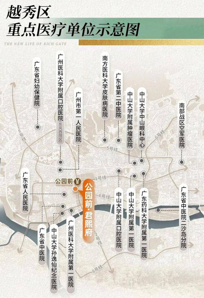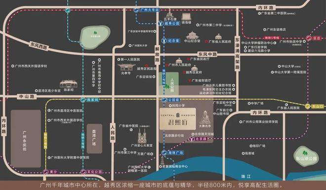 约400米直达1/2号线交汇点公园前站,3公里内5地铁,快速通达全城;约530米尽揽北京路商圈,广百百货、北京路天河城等高端商业及广州酒家、陶陶居等老字号触手可及,萦绕满满的烟火气与缠绵生活感。
