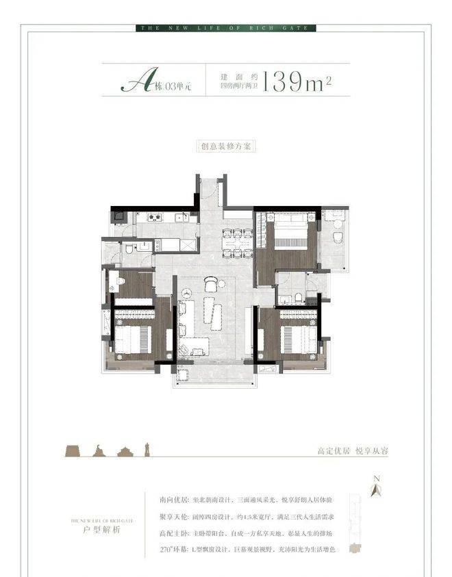 A栋03单元三面采光三阳台139㎡稀缺南向四房