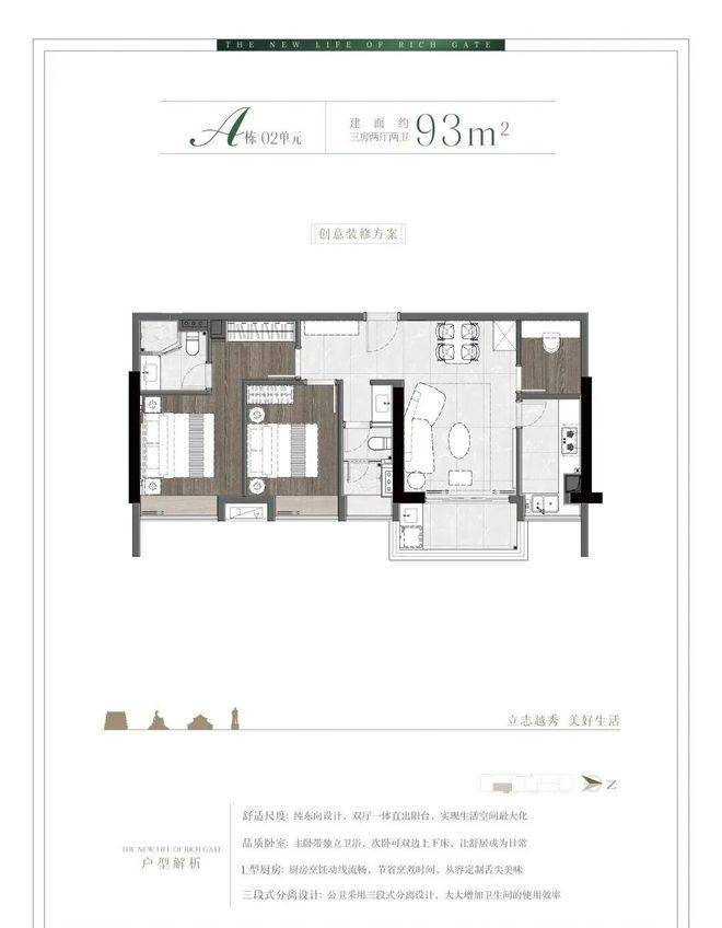 A栋02单元超高性价比93㎡三房