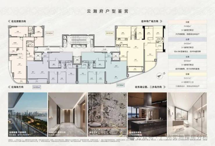 140㎡南向4房2厅2卫:六开间超南,超17米南向面宽,四面采光单边户。