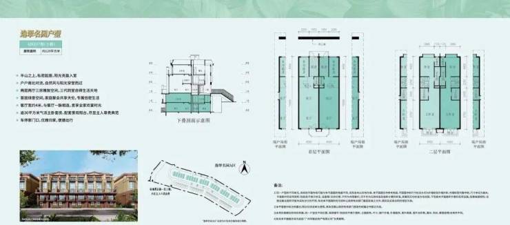 叠院别墅 E户型下户 建筑面积约120㎡1.超百分百使用率:建筑面积约120㎡,前庭后院,户户配有车位超大露台,赠送空间多,使用率高达约130%。2.墅式生活:此户型是最精致的别墅类产品,总价最低,客户可用最实惠的价格,圆自己的别墅梦四期产品不是刚需户型,是给追求舒适型的客户。3.舒适度更高:主人房更拥有超约33㎡大的奢阔空间,并带有私家大阳台,章显主人尊贵气派。4.停车便利:私家车位就在家门口,不用为车位烦恼,归家优雅从容,方便安装充电桩。