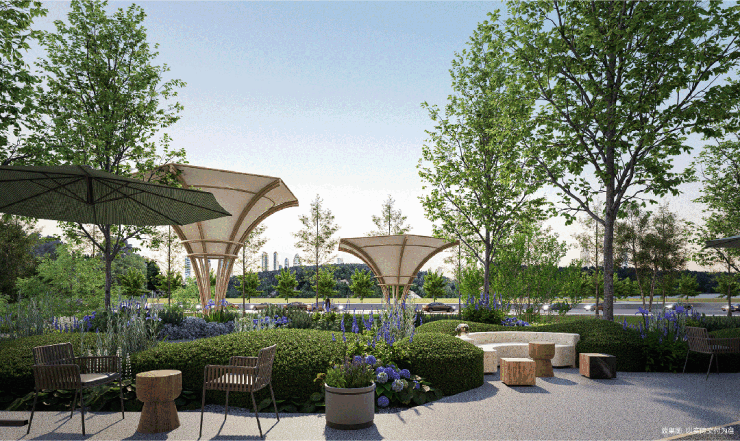 而约2.8万平园林,方案效果也很不错。园林内设计了不少休憩场所,并且借助地势的高低起伏,还设计了观景平台。各种花草树木的搭配也很协调,待实景展示区开放后,大家可以实地看看。