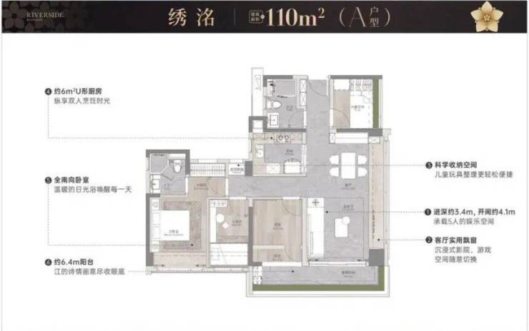 最大的是建面约180㎡的五室两厅三卫户型,不仅有南向江景视野,还配备了270°转角飘窗,主卧套房带步入式衣帽间和独立卫浴,额外的房间可作为老人房或儿童房,完全能满足*改善家庭的居住需求,目前均价约2.5万/㎡,性价比不错 。