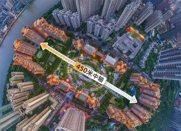 光是社区园林,就有4.8万㎡超大园林,南北楼间距就达到450米,甚至比珠江新城最大的公园——南北直径约430米的珠江公园,还要开阔。