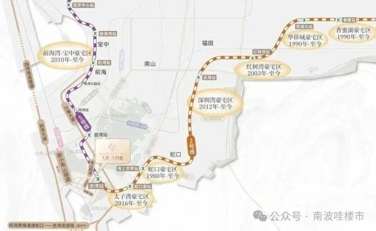 项目距2号线(豪宅线)与5号线(发展线)首发赤湾站约300m(直线距离),从此,坐地铁而不是站地铁,未来新小南山隧道(预计2027年竣工)、望海路升级等重大交通配套持续落地,咫尺间连通蛇口、前海。