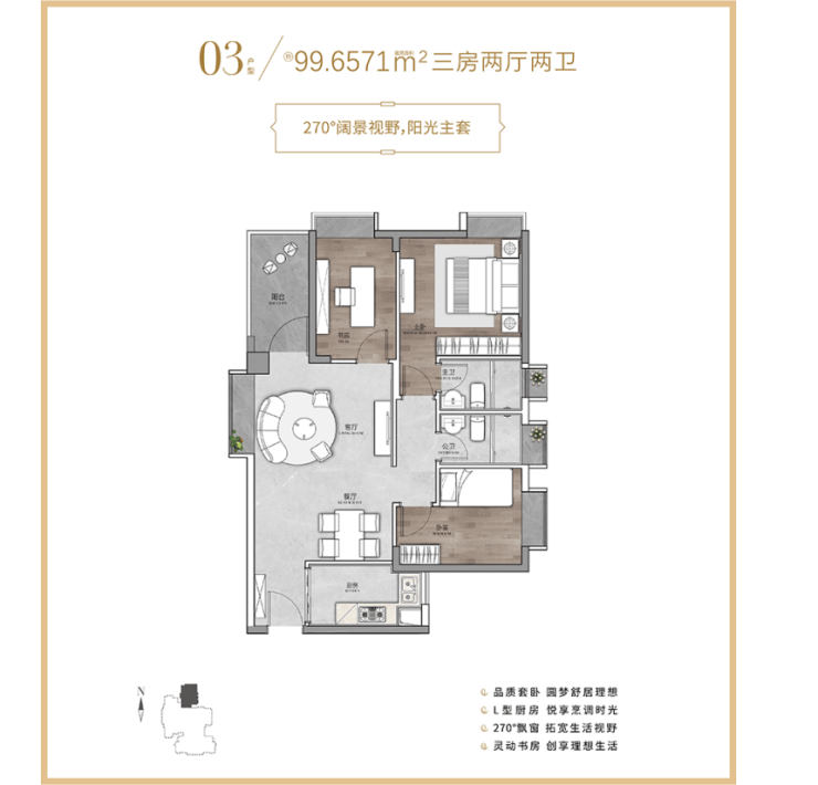 99㎡的 3 室 2 厅总价 368 万元左右,比 90㎡的多了个储物间,餐客厅连在一起更显通透,主卧带独立衣柜区,收纳空间更充足,适合家里东西比较多的家庭。