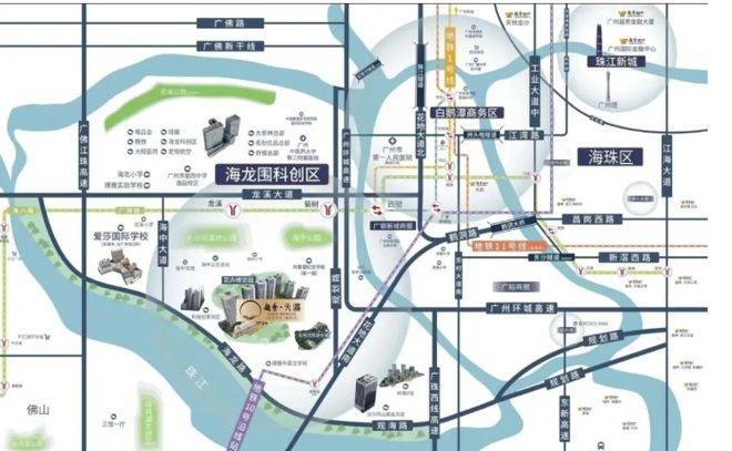 交通出行方式多样但仍有提升空间。项目距离地铁广佛线龙溪站直线距离 1.9 公里,虽稍显偏远,但门口 300 米处的海中公交总站提供了公交接驳,可通往广佛线菊树站、1 号线西塱站,乘坐龙溪地铁站 2 站就能到达 1 号线西塱站,进而畅达荔湾、越秀、天河等城市核心区域。自驾方面,海龙路接驳花地大道,东接广州环城高速,西接广佛江珠高速,南接广台高速,为长途出行与跨区域通勤提供便利。不过,目前公共交通主要依赖公交接驳,远期规划的 10 号线支线建成时间不确定,若能实现,将大大提升交通便捷性。
