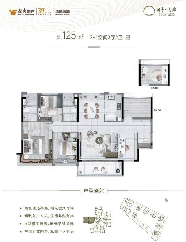 户型设计精巧实用,主推 87㎡/104㎡/125㎡三四房,得房率高达 94 - 98%,空间利用充分。建面约 87㎡的 2 + 1 创意空间 2 卫户型,南向三开间,能直揽江园美景,使用率约 94%。104㎡的 3 + 1 创意空间 2 卫户型,南向 4.5 米开间,约 96% 使用率,约 6 米超宽横厅,可尽揽江园景观面。125㎡的 3 + 1 创意空间 2 卫户型更是亮点十足,南向 4.5 开间,15.3 米阔绰采光面,约 98% 使用率,近 8 米对流进深,约 6.7 米巨幕景观面,近 5 米景观阳台头排亲珠江,可收藏江园美景,南北对流,进深约 7 米的主卧套房搭配 L 型瞰景飘窗,居住舒适度极高。