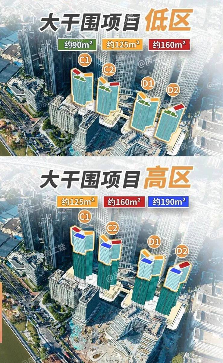 25-37层为高区,2梯3户,配置270°转角阳台,160㎡以上户型主卧套房直面江景