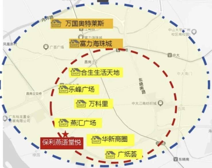 保利燕语堂悦位于氛围成熟的海珠西老城区,周边不缺乏大型的商业,比如有综合体方圆333、乐峰广场、广百等等,可以说是海珠最成熟的商业都在项目周边了,烟火气十足,不愁吃喝玩乐。