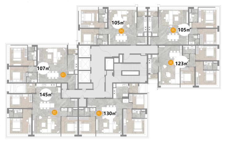 户型鉴赏(105㎡~145㎡/3梯6户)